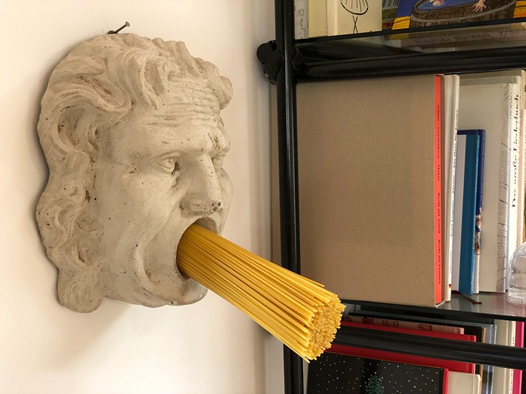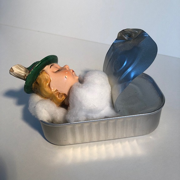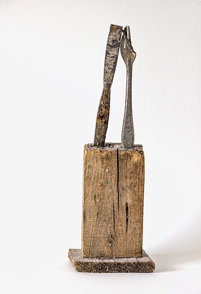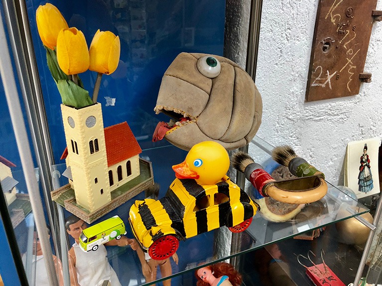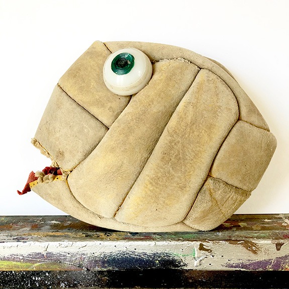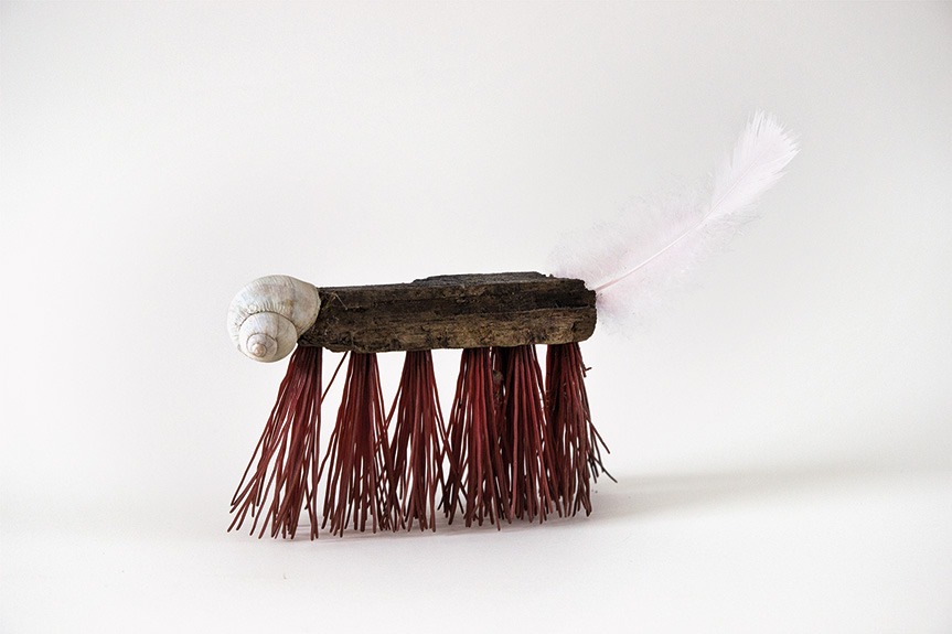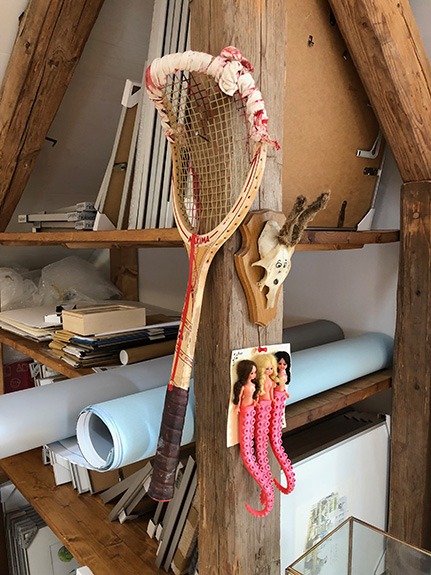 Wenn ich einmal nicht male klebe, montiere und installiere ich Fundstücke zu neuen Daseinsformen. Sie sind seltener auf Gaymann-Ausstellungen zu sehen, bevölkern aber das ganze Atelier.