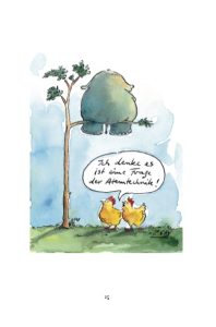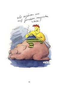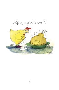 In den Cartoons von Peter Gaymann müssen die Hühner zum Psychiater, die Hähne hadern mit ihrem Alter und die Schweine schwitzen beim Sport. Aber auch die Menschen haben ihre kleinen und großen Alltagssorgen … Doch zum Glück gibt es Wein, Champagner und La Dolce Vita: So kann man das menschliche Dasein trotz all seiner Herausforderungen wunderbar genießen!